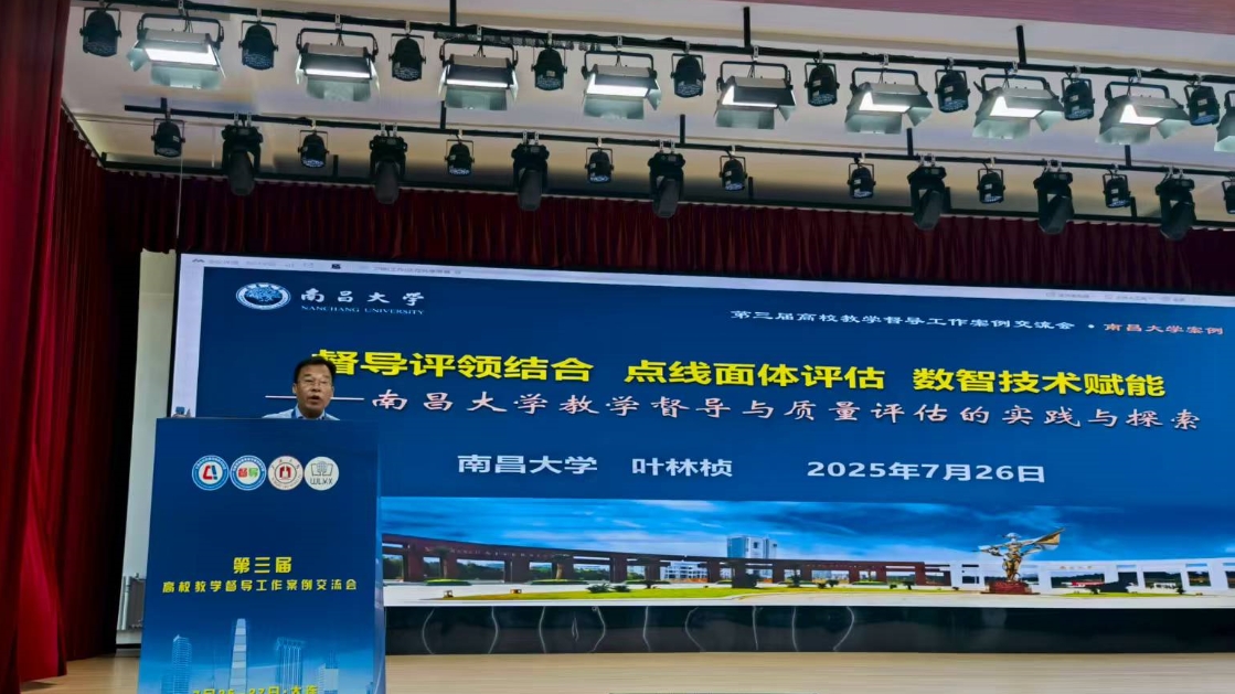 我校教学督导与评估中心主任叶林桢参加会议,并代表学校以“督导评领结合 点线面体评估 数智技术赋能——南昌大学教学督导与教育评估的实践与探索”为题汇报参选案例。案例以“抓好‘六个一’建设教学质保体系的实践”“本科教育教学工作成效”“服务教育强国建设纵深探索健全质保体系”三部分内容展示了我校本科教学督导工作探索的实践、成效与思考。